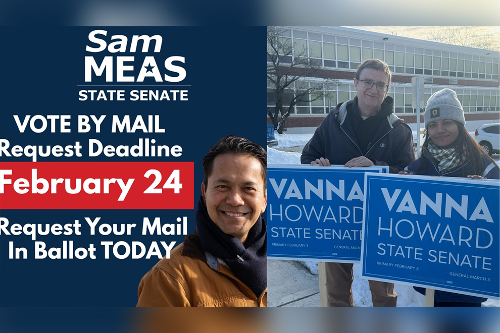 Republican candidate Sam Meas (left) is competing with Democrat Vanna Howard (right) for election to the Massachusetts State Senate. FB