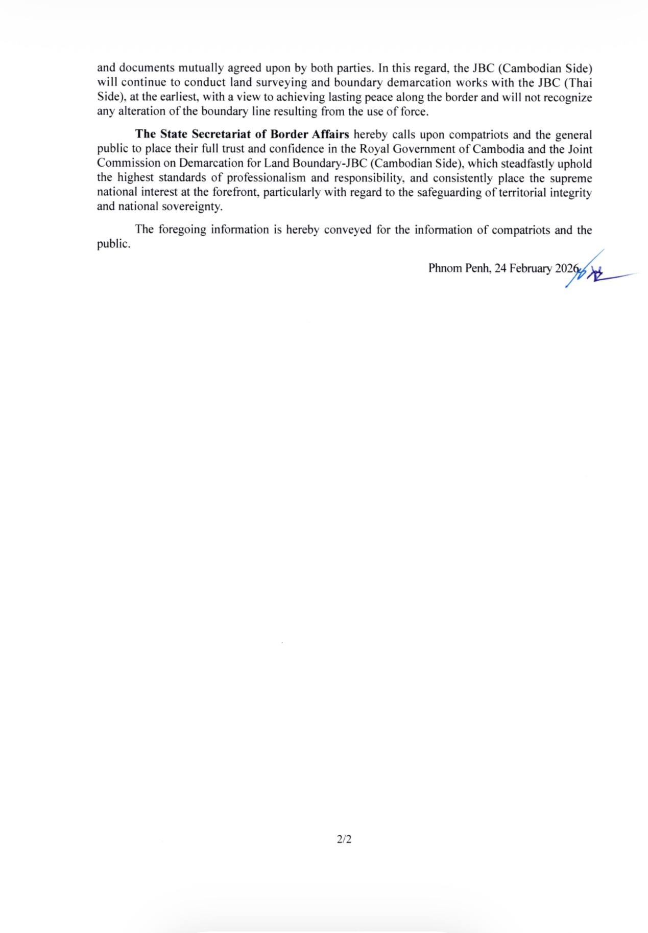 Cambodian Side Dispatches New Diplomatic Mission to Joint Boundary Commission as Thai Side Proposes Four-Point Plan to Deploy Joint Survey Teams to Border Areas in March, 2026
