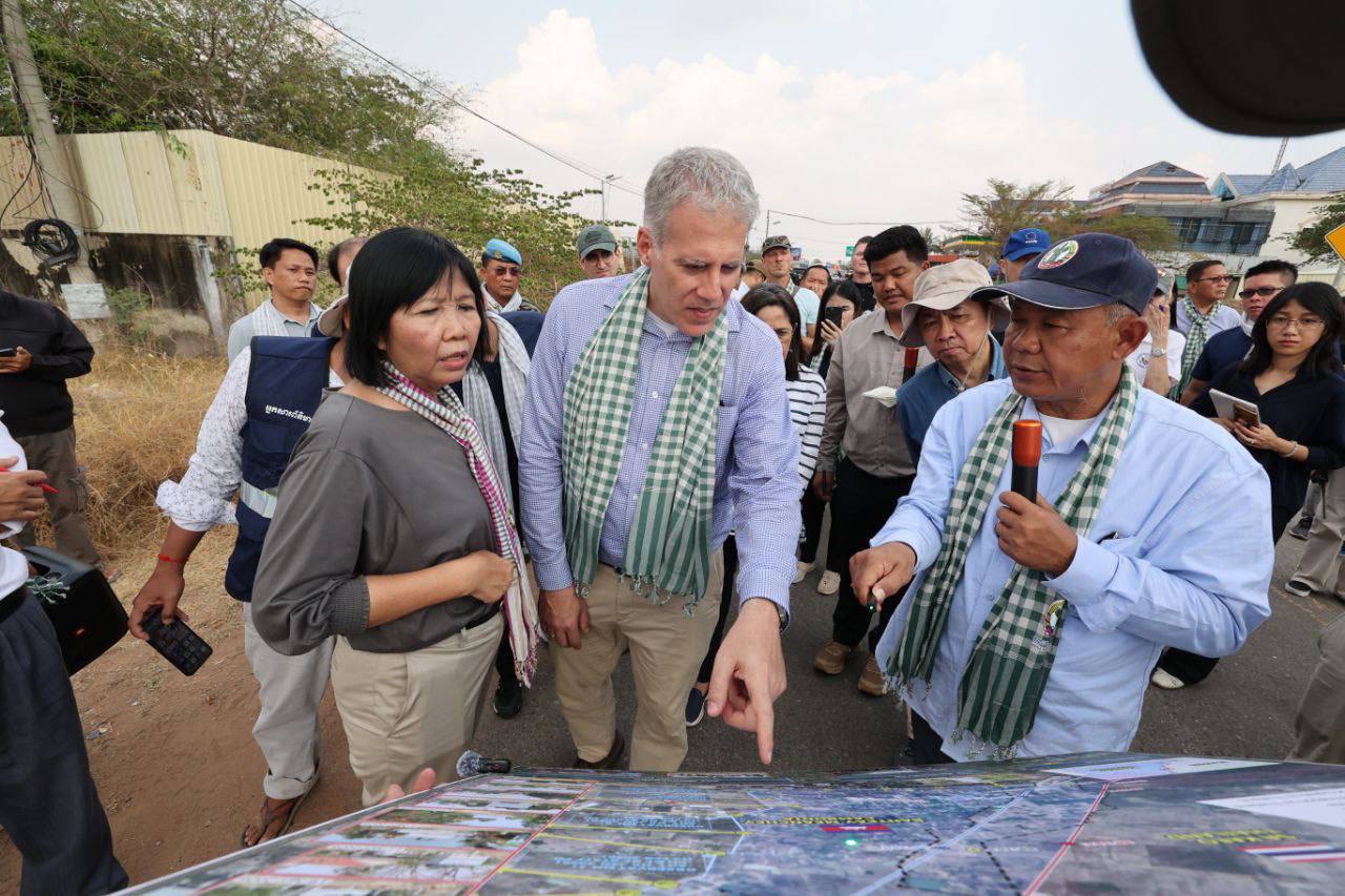 បន្ទាយមានជ័យ ថ្ងៃទី២៣ ខែកុម្ភៈ ឆ្នាំ២០២៦—លោកជំទាវ អ៊ាត សោភា រដ្ឋមន្ត្រីស្តីទី ក្រសួងការបរទេស និងសហប្រតិបត្តិការអន្តរជាតិ អញ្ជើញដឹកនាំបណ្តាអង្គទូត និងទីភ្នាក់ងារបរទេស ប្រចាំនៅព្រះរាជាណាចក្រកម្ពុជា អញ្ជើញទៅពិនិត្យមើលដោយផ្ទាល់ សកម្មភាពរំលោភបំពានរបស់កងកម្លាំងថៃ នៅតំបន់បឹងត្រកួន និងទស្សនកិច្ច និងពិនិត្យមើលស្ថានភាពជនភៀសសឹកនៅមណ្ឌលសុវត្ថិភាពវត្តកណ្តោល ស្ថិតក្នុងស្រុកថ្មពួក ខេត្តបន្ទាយមានជ័យ នារសៀលថ្ងៃទី២៣ ខែកុម្ភៈ ឆ្នាំ២០២៦។