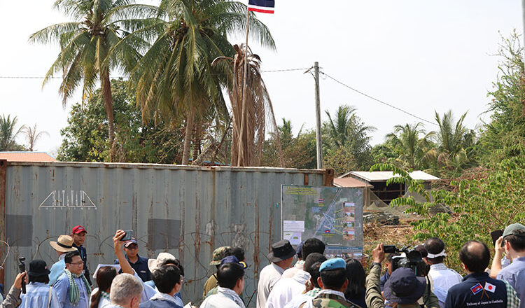The visit, led by Acting Minister of Foreign Affairs and International Cooperation Eat Sophea, brought foreign envoys to Chouk Chey village, Prey Chan village and the Boeung Trakuon area, where provincial authorities said Thai forces had destroyed civilian homes, altered natural terrain and installed shipping containers and barbed wire inside Cambodian territory.