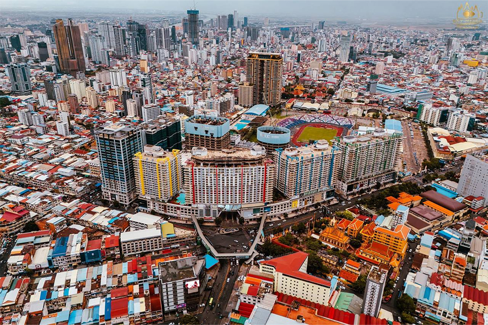 A bird’s-eye view of the Phnom Penh skyline shows the city’s development, closely linked to the financial sector. Koeut Chhe, former Phnom Penh deputy governor