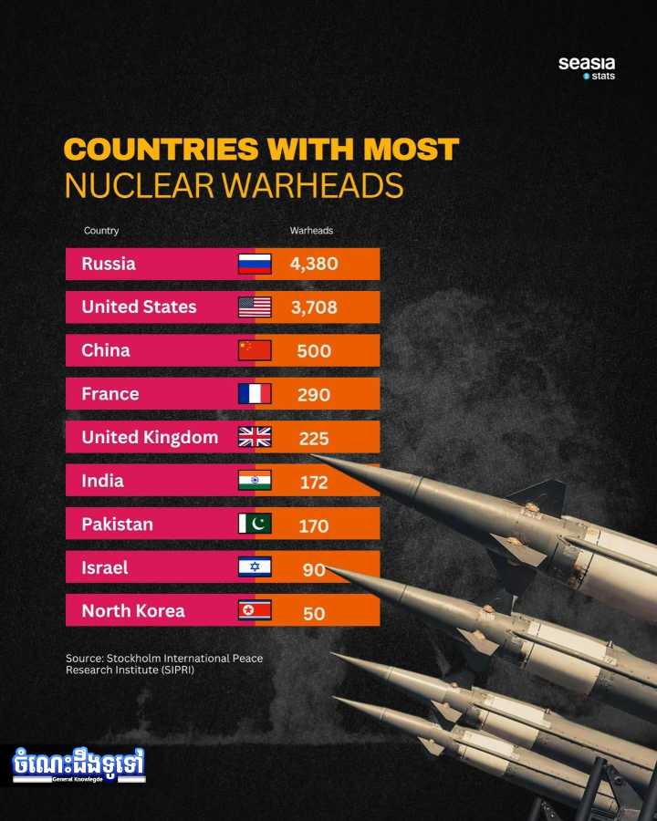 ចំណេះដឹងទូទៅ៖ ប្រទេសដែលមានអាវុធនុយក្លេអ៊ែរច្រើនជាងគេបំផុតនៅលើពិភពលោក