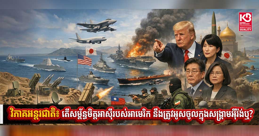(វ៉ាស៊ីនតោន)៖ លោក ដូណាល់ ត្រាំ បានស្នើសុំរឿងមួយពីសម្ព័ន្ធមិត្ត។ នៅបន្ទាប់ពីធ្វើឱ្យទីផ្សារថាមពលក្រឡាប់ចាក់តាមរយៈការវាយប្រហារលើអ៉ីរ៉ង់ ឥលូវនេះ លោកប្រធានាធិបតីអាមេរិក បានទាមទារឱ្យសម្ព័ន្ធមិត្តរបស់អាមេរិកនៅជុំវិញពិភពលោកបញ្ជូនកងកម្លាំងដើម្បីជួយបើកច្រកសមុទ្រ Hormuz។ នៅក្នុងការបង្ហោះមួយលើបណ្ដាញទំនាក់ទំនងសង្គមកាលពីថ្ងៃទី១៤ ខែមីនា លោក ត្រាំ ចុចឈ្មោះសម្ព័ន្ធមិត្តក្នុងតំបន់អាស៊ីក្នុងនោះរួមមានជប៉ុន និងកូរ៉េខាងត្បូងដែលមានឈ្មោះនៅក្នុងបញ្ជីប្រទេសដែលលោកសង្ឃឹមថានឹងបញ្ជូននាវាចម្បាំងទៅកាន់តំបន់ឈូងសមុទ្រ។