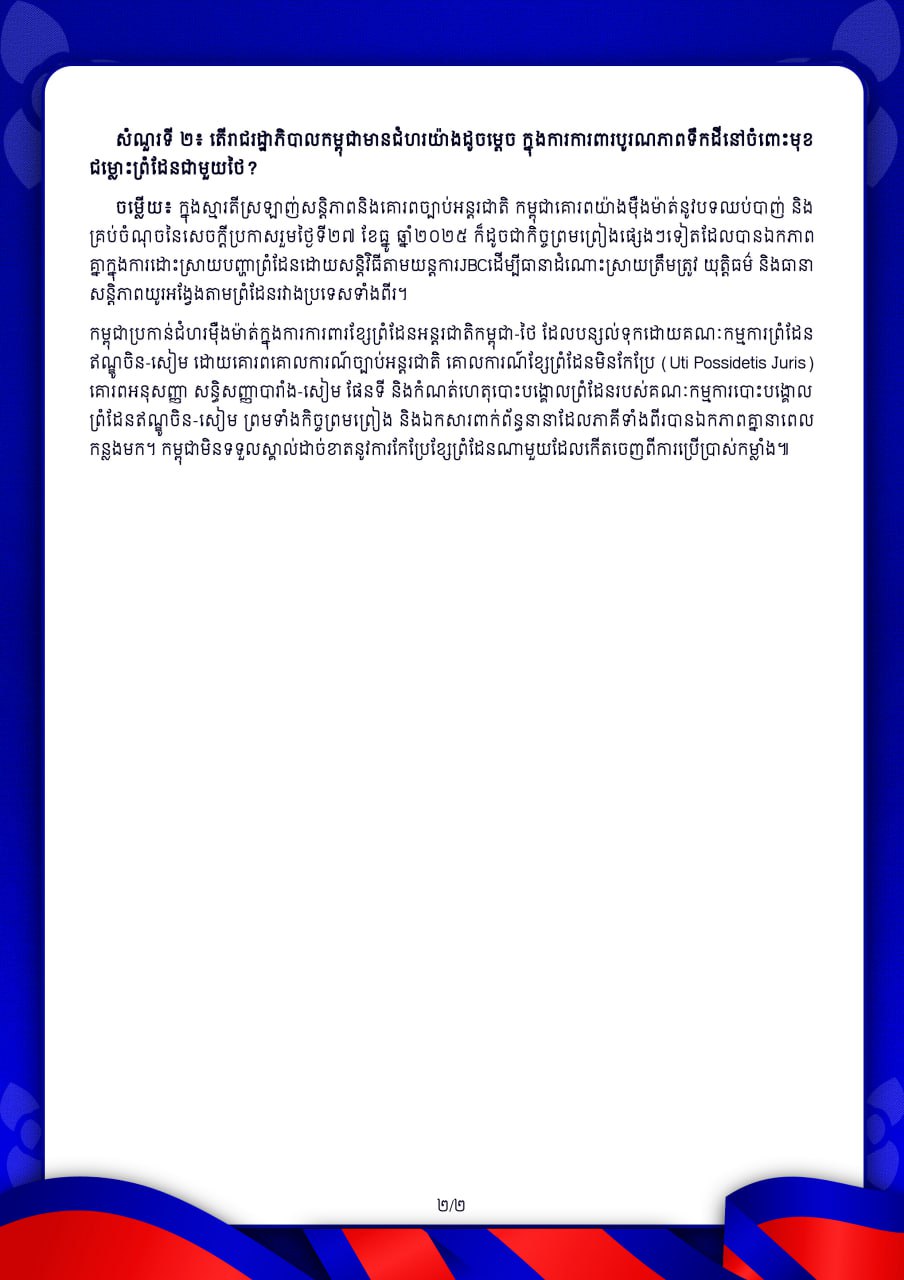 ការឆ្លើយតបរបស់ក្រុមការងារសាធារណមតិកម្ពុជា (Cambodia PR Team) ទាក់ទងនឹងផែនការនៃការសាងសង់របងព្រំដែន នៅចន្លោះបង្គោលលេខ៥២-៥៩ របស់ភាគីថៃ ថ្ងៃទី១៨ ខែមីនា ឆ្នាំ២០២៦