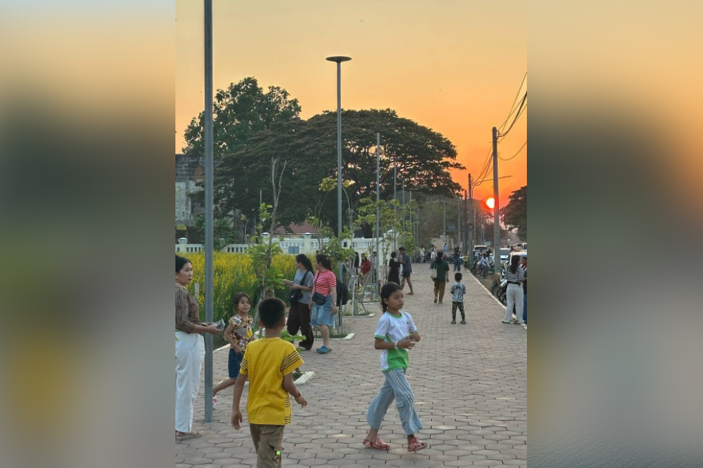 People enjoy a provincial town garden near the old Royal residence in Stung Treng— soon to be redeveloped into the Preak Sarak Munti. Sok Vannak