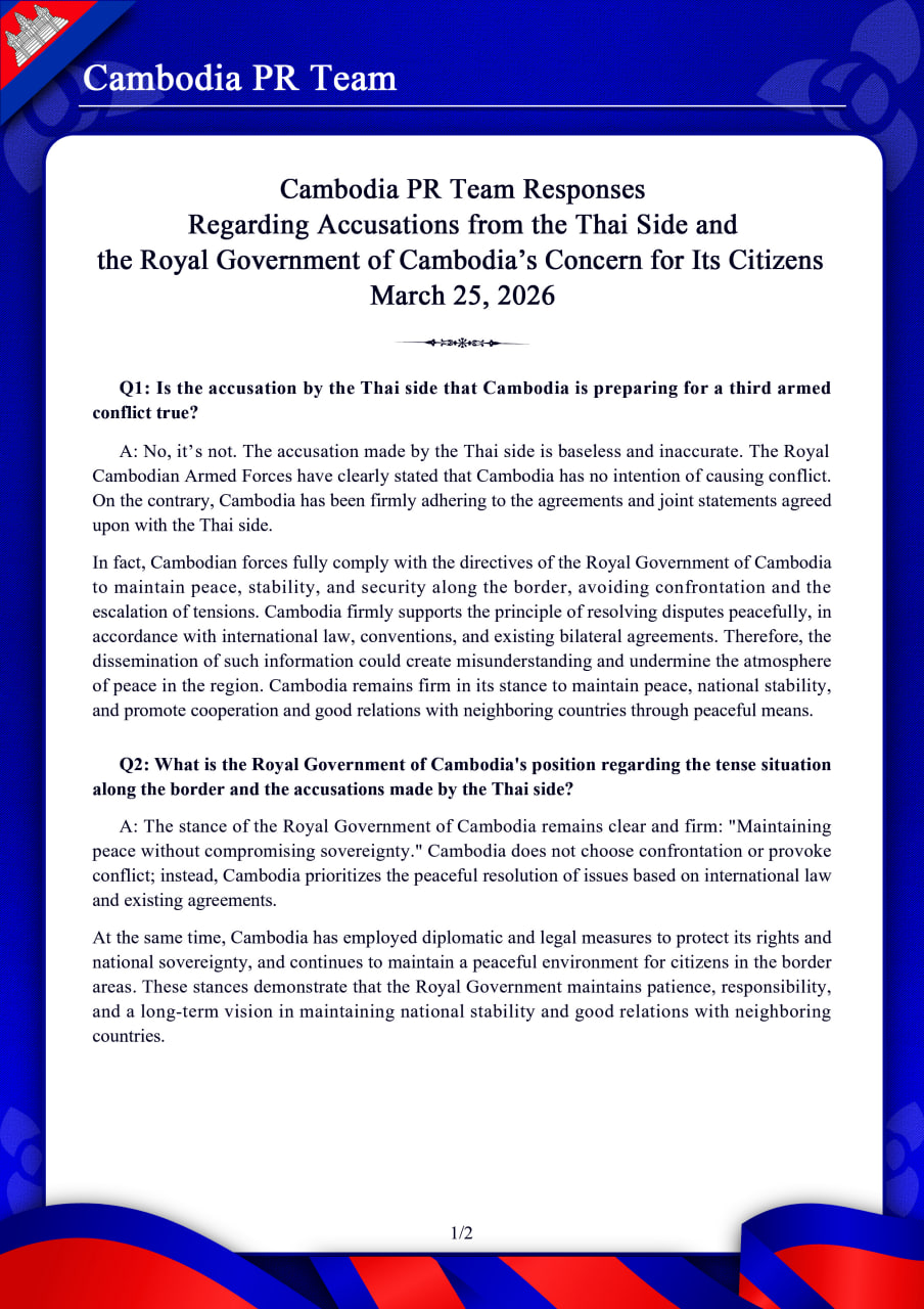 Regarding Accusations from the Thai Side and the Royal Government of Cambodia’s Concern for Its Citizens March 25, 2026 Regarding Accusations from the Thai Side and the Royal Government of Cambodia’s Concern for Its Citizens March 25, 2026