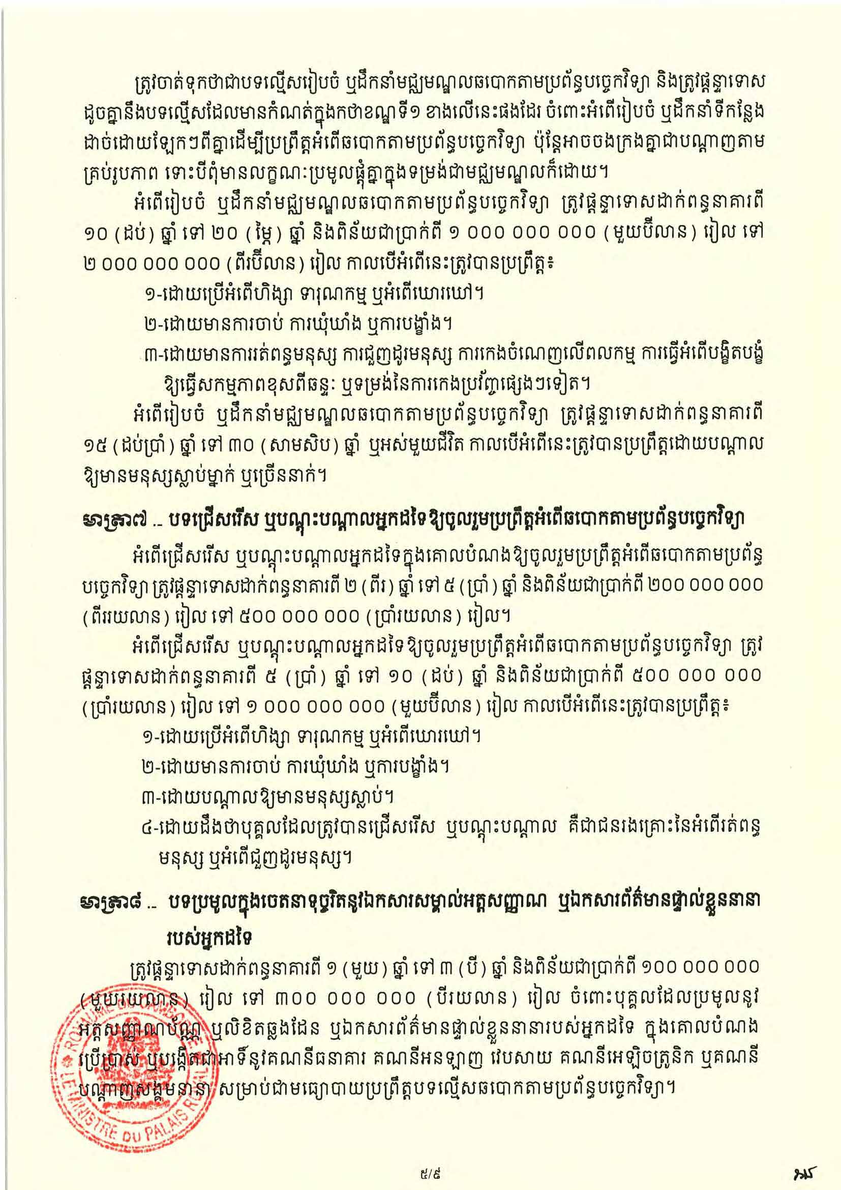 សម្តេចតេជោ ហ៊ុន សែន ប្រមុខរដ្ឋស្តីទី ចេញព្រះរាជក្រមប្រកាសឱ្យប្រើច្បាប់ស្តីពីការប្រឆាំងការឆបោកតាមប្រព័ន្ធបច្ចេកវិទ្យា