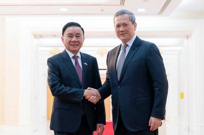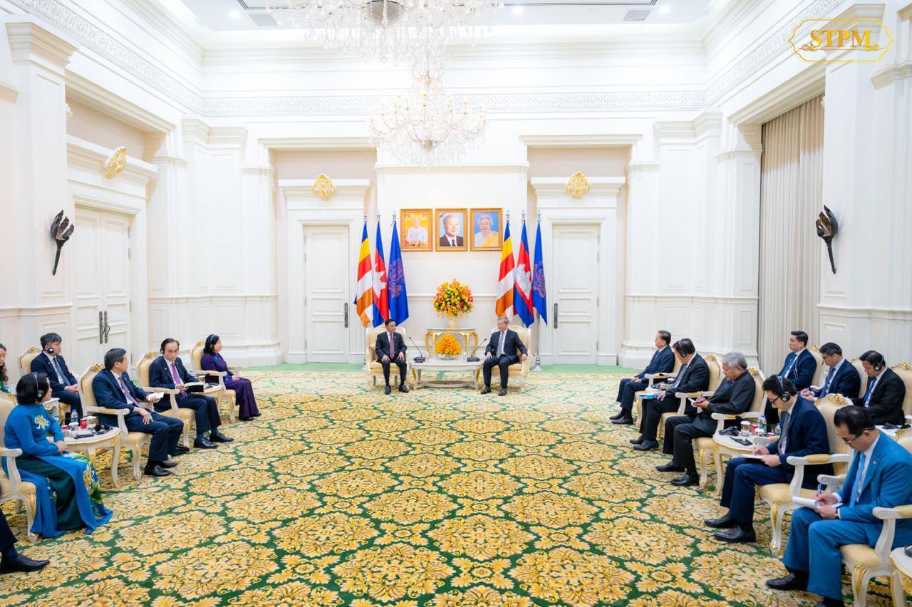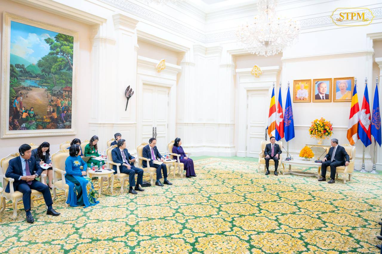 នាព្រឹកថ្ងៃទី១០ ខែមេសា ឆ្នាំ២០២៦, សម្ដេចមហាបវរធិបតី ហ៊ុន ម៉ាណែត នាយករដ្ឋមន្ត្រីនៃព្រះរាជាណាចក្រកម្ពុជា បានជួបពិភាក្សាការងារជាមួយ ឯកឧត្តម ត្រិន កឹមទូ សមាជិកការិយាល័យនយោបាយ និងជាសមាជិកប្រចាំការគណៈលេខាធិការមជ្ឈិមបក្សកុម្មុយនីស្តវៀតណាម នៅវិមានសន្តិភាព ។