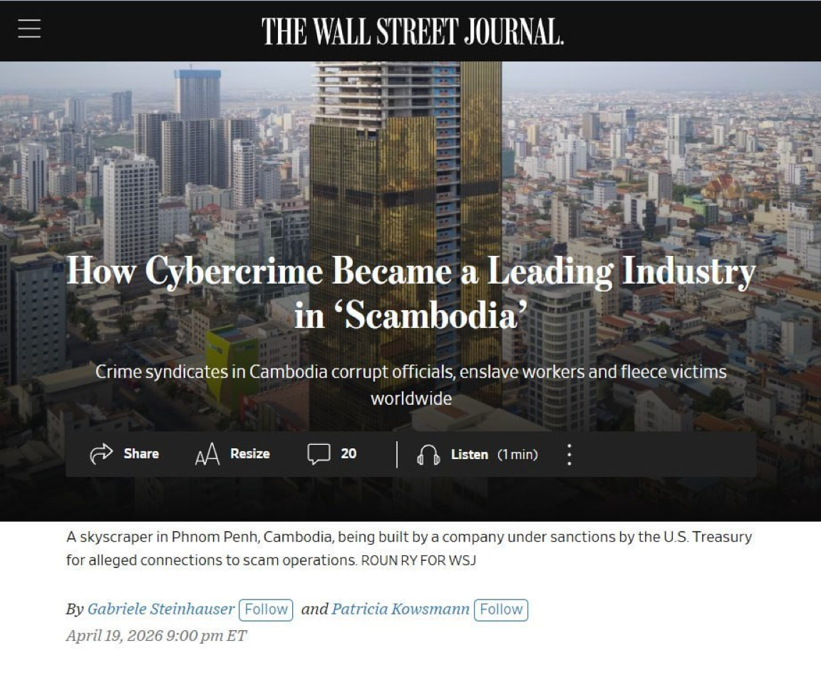 Cambodia, like many countries in Southeast Asia, faces a real and serious challenge from transnational cybercrime networks. Even The Wall Street Journal acknowledges that many of these operations are run by foreign syndicates, often exploiting trafficked labour and operating across borders. But that is precisely the point the headline distorts: Cambodia is not the origin of this system. It is one of its battlegrounds.