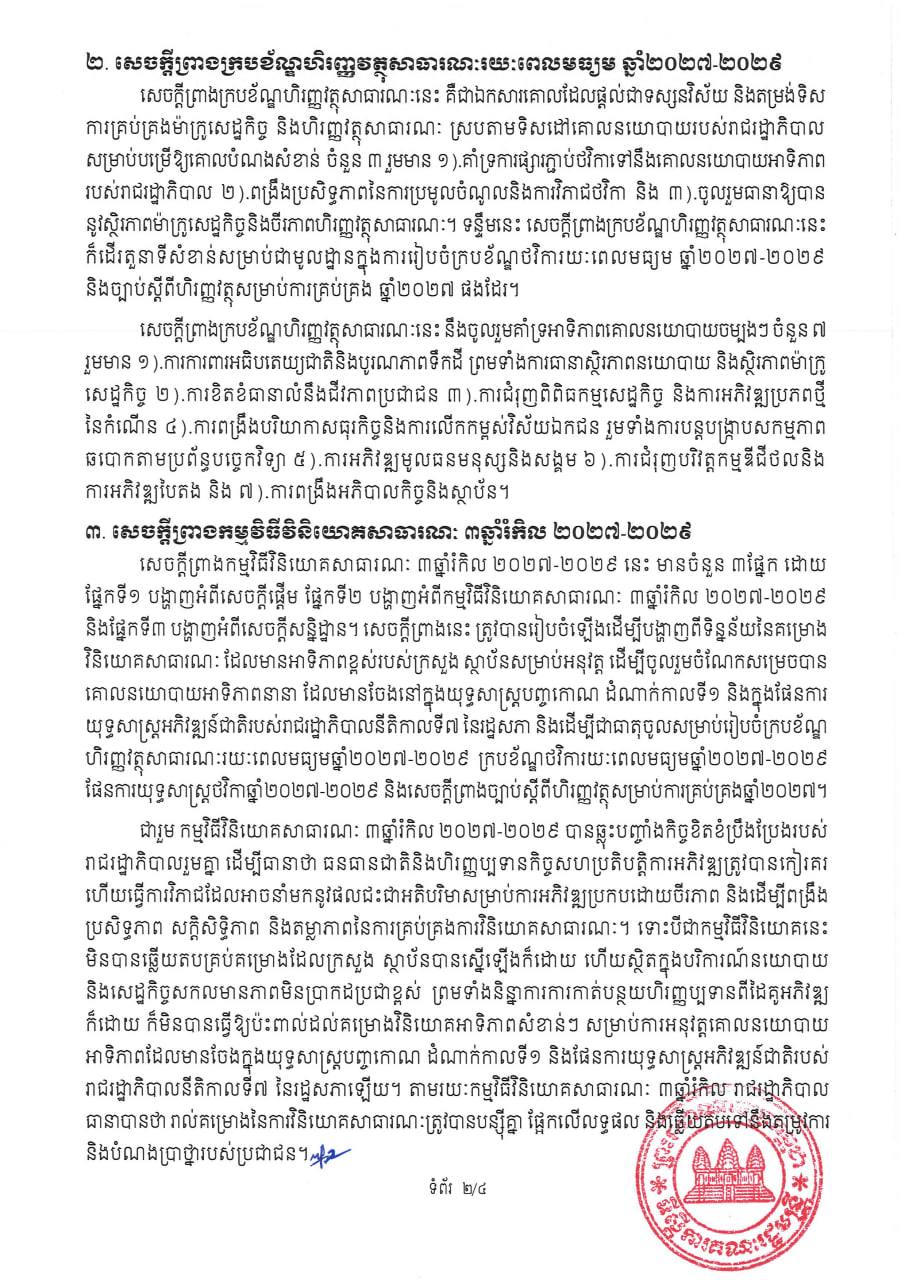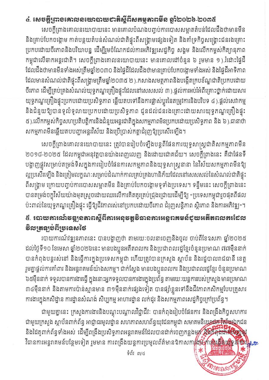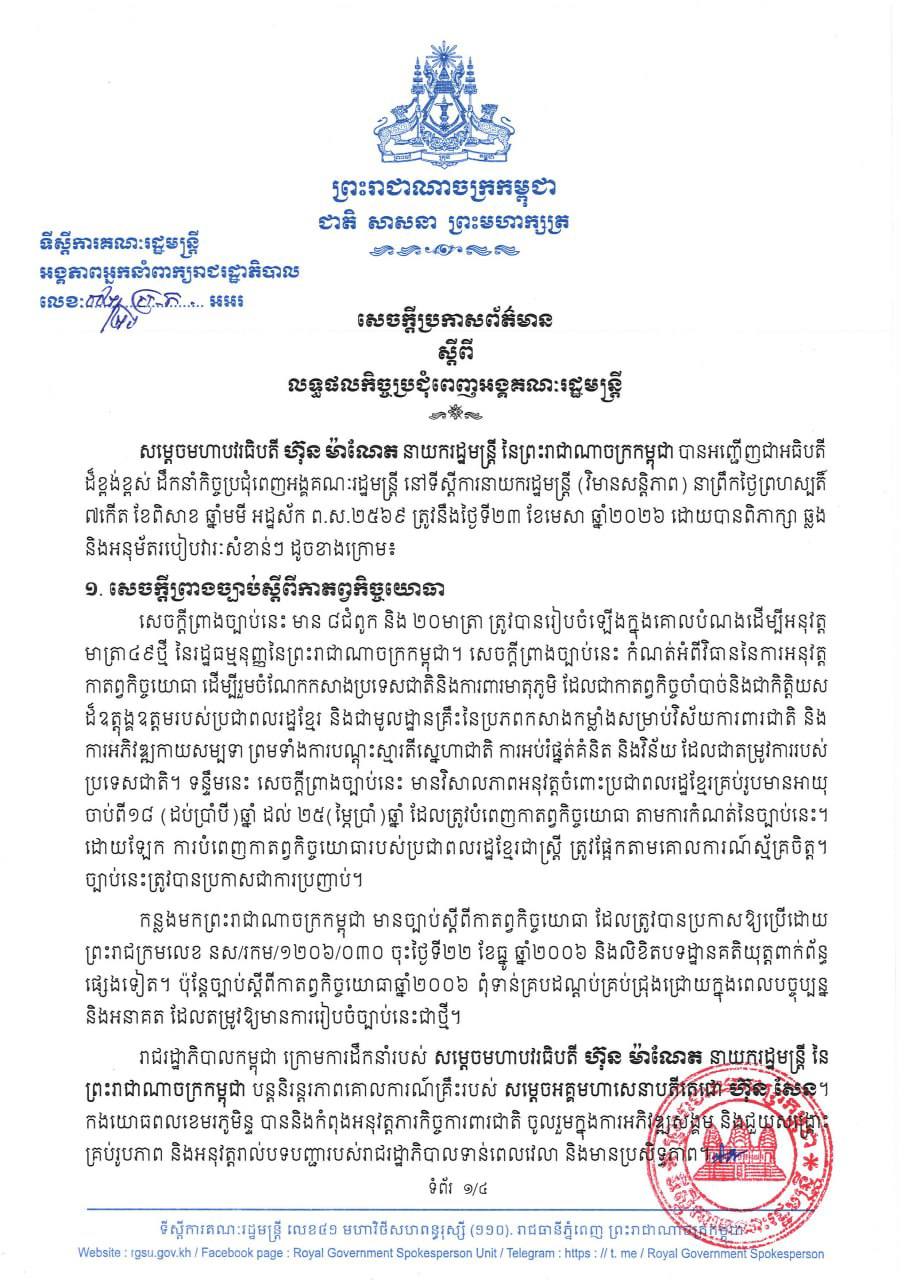 សេចក្តីប្រកាសព័ត៌មាន ស្តីពី លទ្ធផលកិច្ច​ប្រជុំពេញ​អង្គ​គណៈ​រដ្ឋ​មន្រ្តី ថ្ងៃទី២៣ ខែមេសា ឆ្នាំ២០២៦