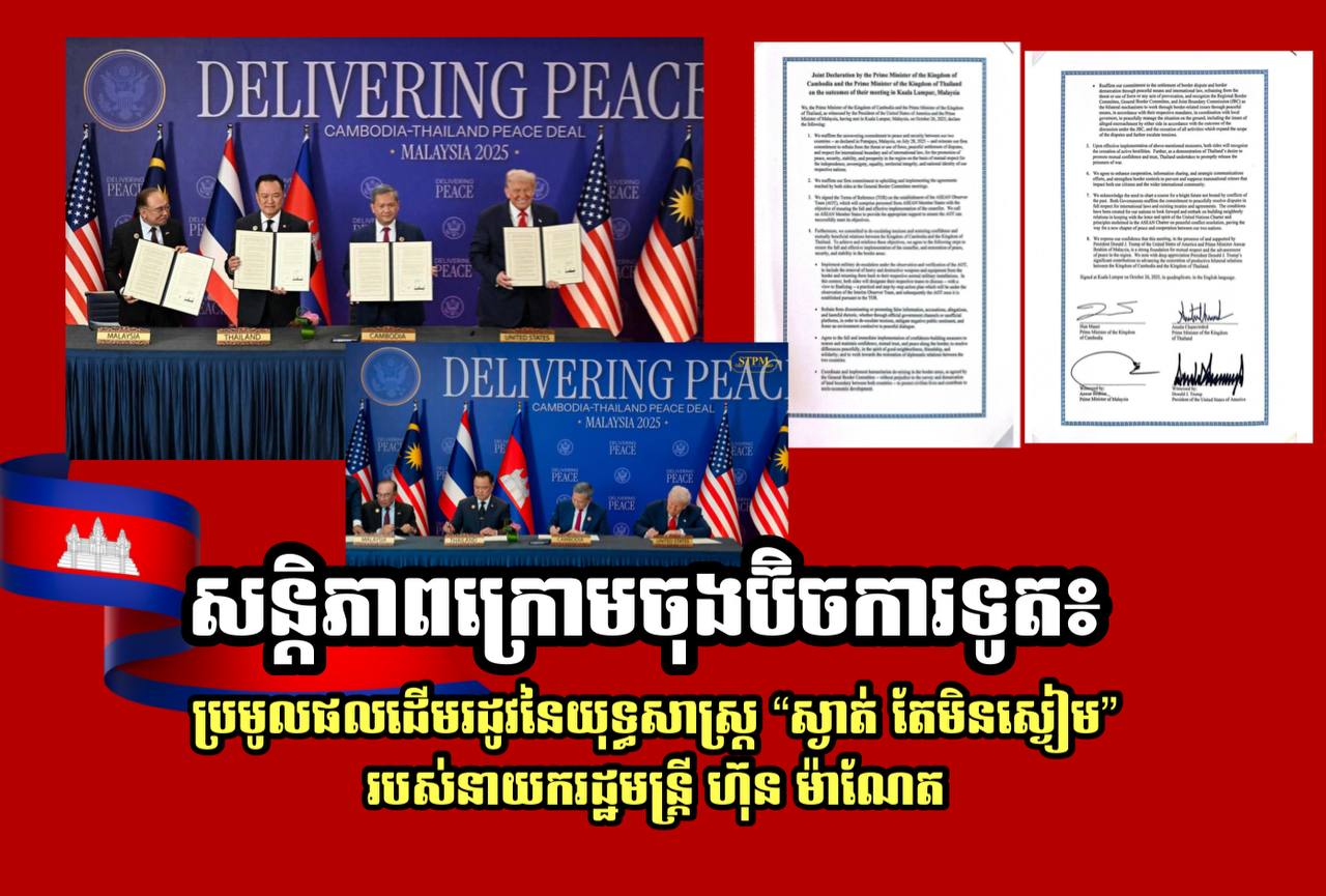 ការបញ្ចប់ស្នូរគ្រាប់កាំភ្លើងតាមបណ្តោយព្រំដែនកម្ពុជា-ថៃ ក្រោមអំណាចនៃចុងប៊ិចការទូតគឺជាសមិទ្ធផលនយោបាយដ៏សំខាន់មួយដែលកម្ពុជា មិនត្រឹមតែរក្សាបាននូវសន្តិភាពទេ